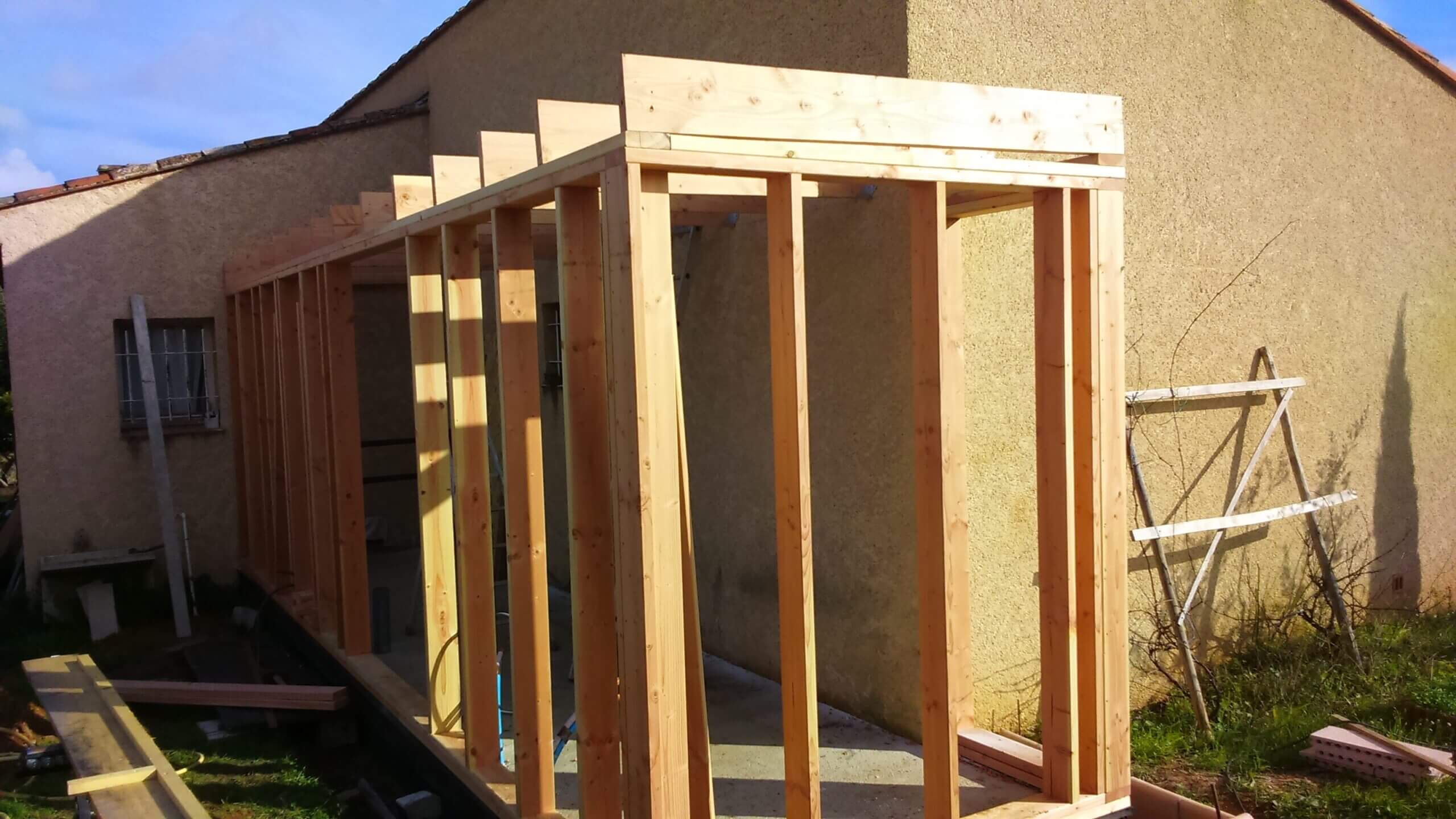 Il repose sur un squelette porteur (montants verticaux et lisses horizontales) qui supporte le poids de la maison, contrairement au parpaing où c’est le mur entier qui porte la charge.