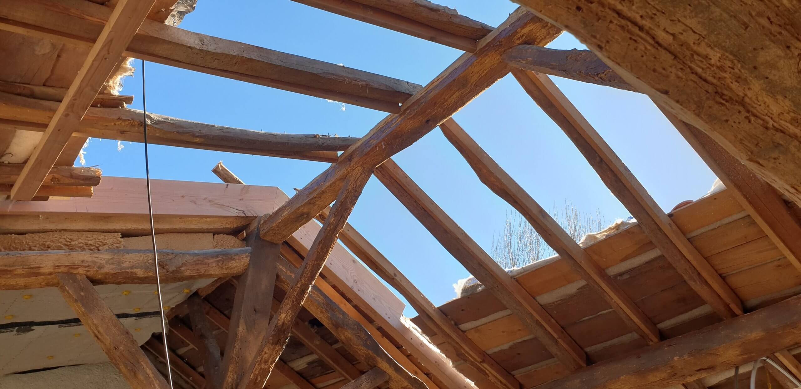 Le Mise « Hors d’Eau » : Pose de la charpente et de la toiture. La maison est alors protégée de la pluie.