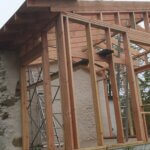 L’Ossature & Contreventement : Montage de la structure en bois (montants et lisses) rigidifiée par des panneaux (type OSB ou panneaux de fibre bois rigides) pour empêcher toute déformation.