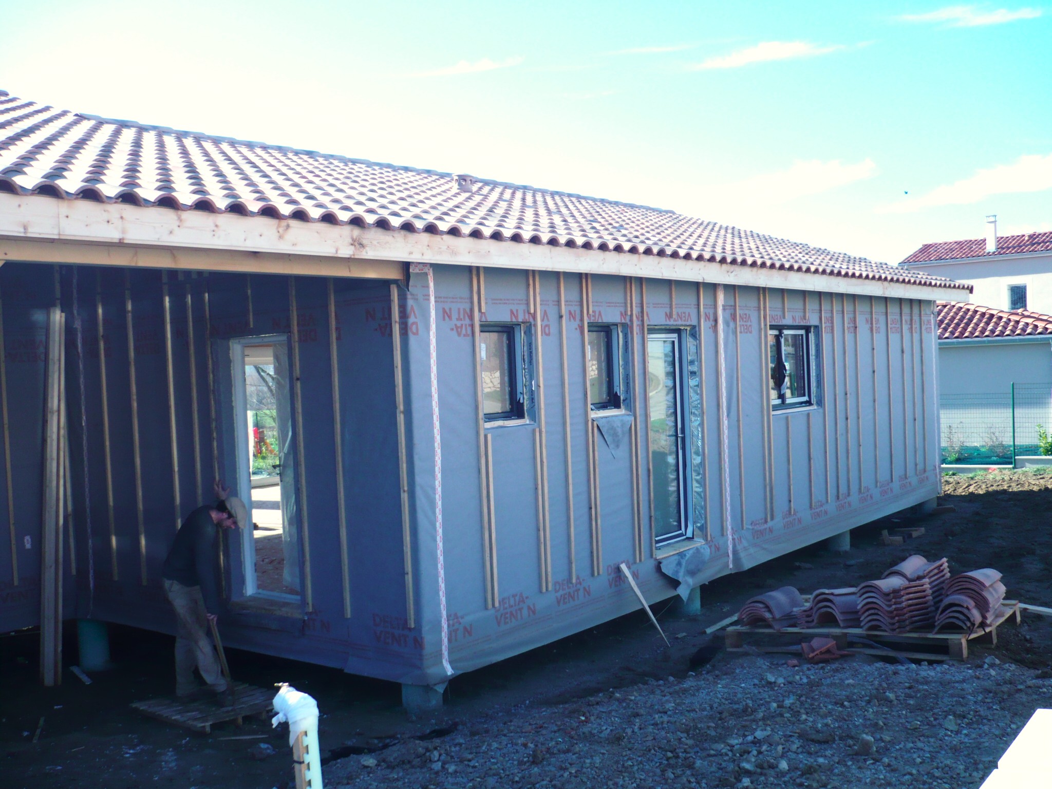 La Mise « Hors d’Air » : Installation des menuiseries (portes et fenêtres). La maison est close et étanche au vent.