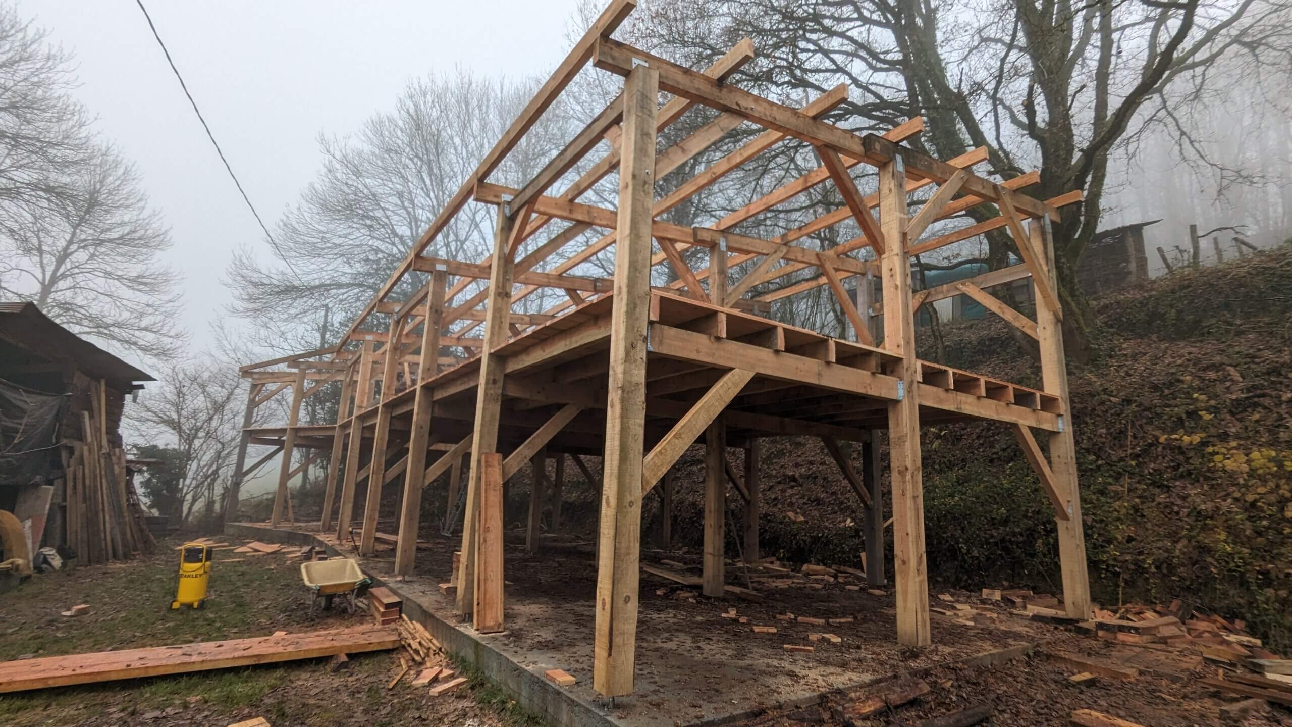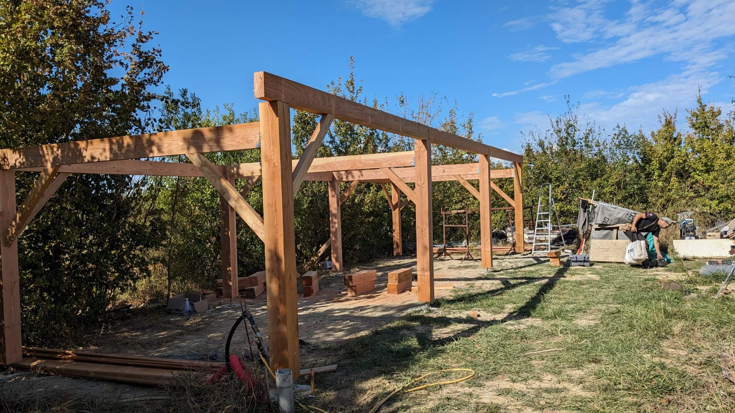 Pas de séchage : Contrairement au béton qui nécessite des semaines de séchage, le bois est un chantier sec. On peut attaquer les finitions intérieures dès que le toit est posé.